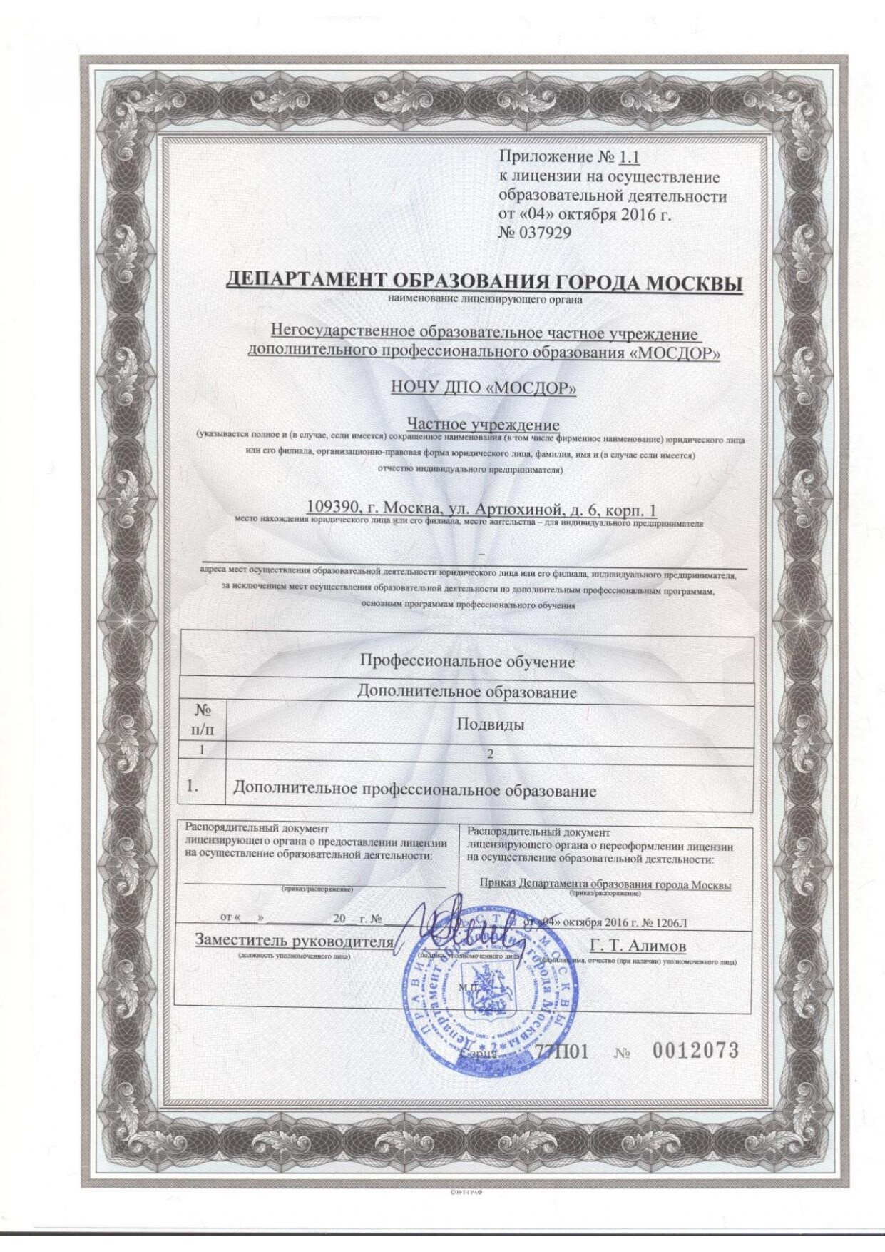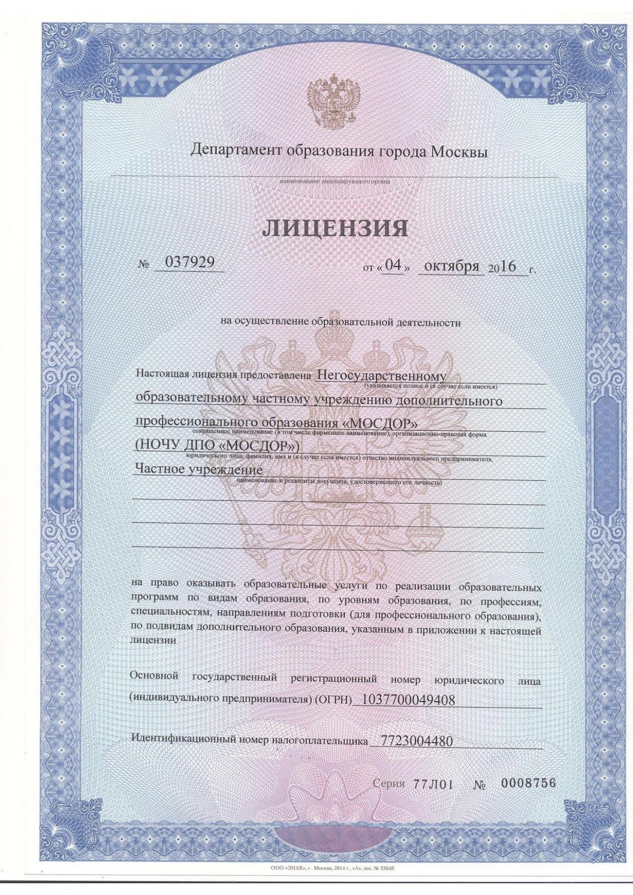 НЕГОСУДАРСТВЕННОЕ ОБРАЗОВАТЕЛЬНОЕ ЧАСТНОЕ УЧРЕЖДЕНИЕ ДОПОЛНИТЕЛЬНОГО ПРОФЕССИОНАЛЬНОГО ОБРАЗОВАНИЯ "МОСДОР"